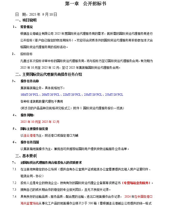 連云港堿業(yè)有限公司集裝箱國際貨運(yùn)代理服務(wù)商項(xiàng)目招標(biāo)公告