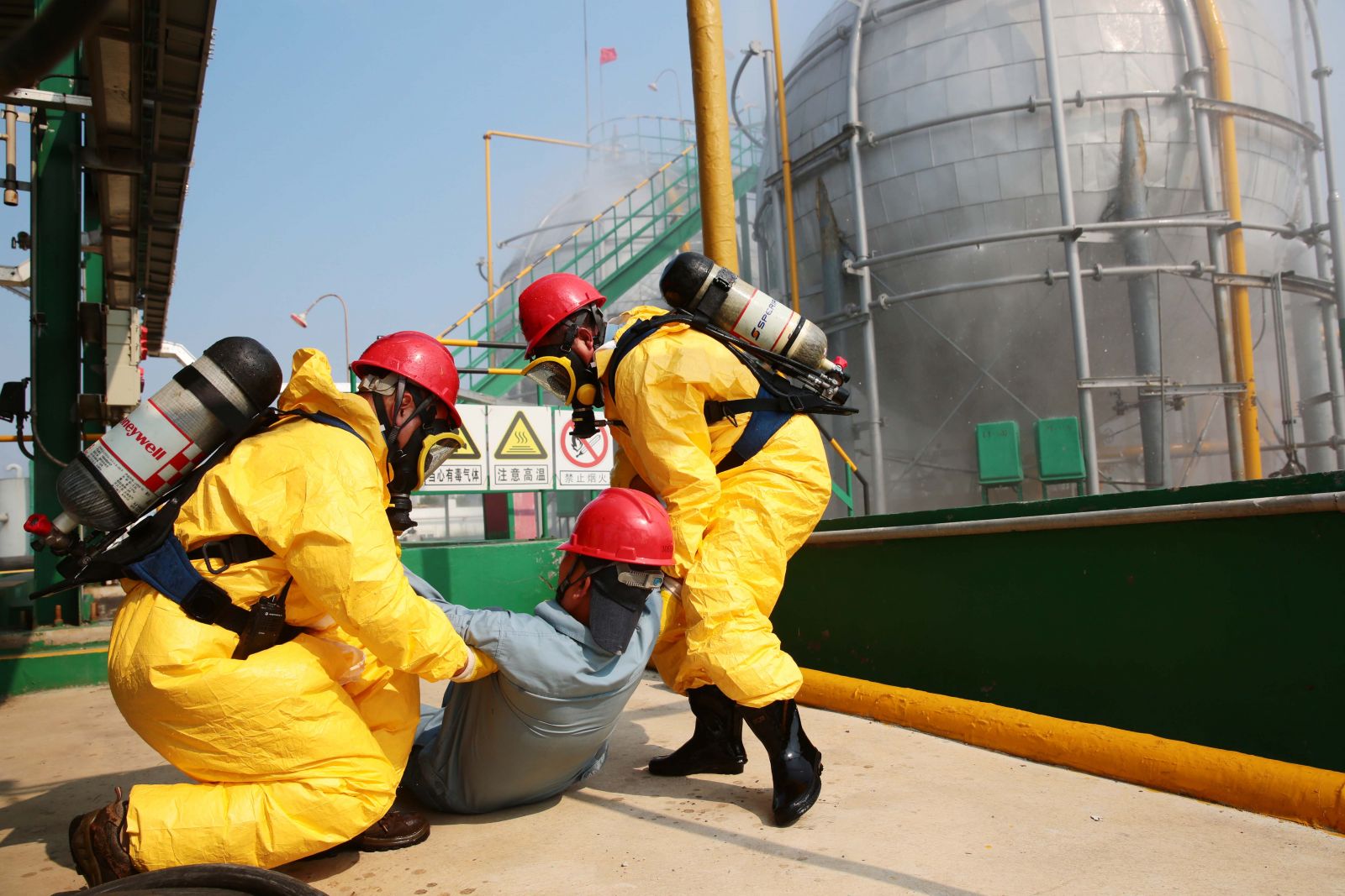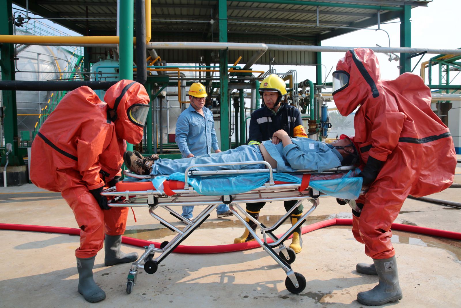 為檢驗公司應(yīng)急救援時各環(huán)節(jié)的協(xié)調(diào)能力和應(yīng)急救援預案的可操作性,提高應(yīng)急人員在緊急情況下妥善處置突發(fā)事件的實戰(zhàn)能力,9月5日,公司以“液氨庫B球罐底部發(fā)生泄漏,現(xiàn)場當班工人中毒”為假想事故,在液氨庫舉行秋季危險化學品生產(chǎn)安全事故應(yīng)急救援演練。
