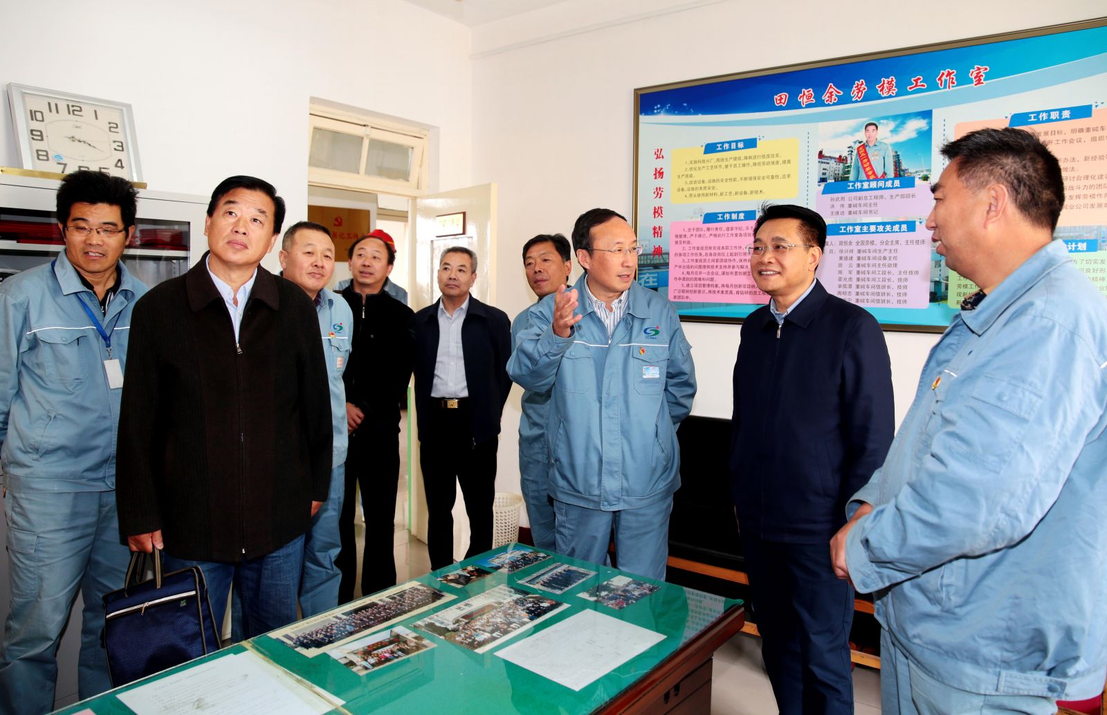在田恒余勞模工作室,王家全詳細(xì)詢問公司勞模情況,當(dāng)他得知田恒余的“黃泥堵漏法”、“七字操作法”等小發(fā)明、小創(chuàng)造給公司帶來的豐厚經(jīng)濟(jì)效益時(shí),他指出,自己優(yōu)秀更要繼續(xù)發(fā)揚(yáng)好勞模帶頭引領(lǐng)作用,勞模工作室的關(guān)鍵在創(chuàng)新,利用好這平臺(tái),將勞模精神和技能傳承下去,為公司持續(xù)發(fā)展提供人才保障。