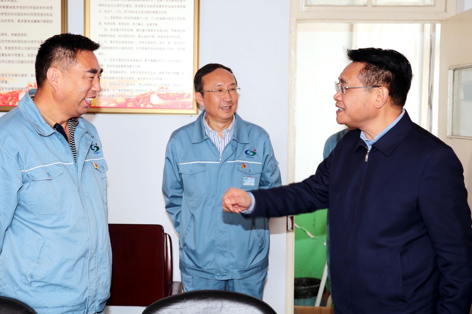 10月14日,市人大常委副主任、工會(huì)主席王家全一行深入堿業(yè)公司開展調(diào)研工作。該公司黨委書記、董事長張衛(wèi)民,紀(jì)委書記、工會(huì)主席黃建德等人陪同。