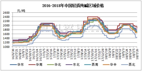 本周(2018.7.20-7.26)純堿市場(chǎng)價(jià)格走勢(shì)整理。輕質(zhì)純堿華中及華東區(qū)域部分廠家低價(jià)上調(diào)50-100元/噸不等,受湖北雙環(huán)110萬(wàn)噸裝置停機(jī)一個(gè)月影響,兩湖、兩廣以及江西福建等地市場(chǎng)偏低價(jià)位上行,短期用戶需求無(wú)增量,加上買(mǎi)漲情緒弱,部分中間商少量接單,主流成交價(jià)格形成整理態(tài)勢(shì)。
