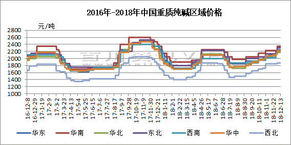 百川資訊:純堿市場(chǎng)重質(zhì)純堿送到價(jià)格走勢(shì)圖(注:西北出廠(chǎng))(2018.12.7-12.13)