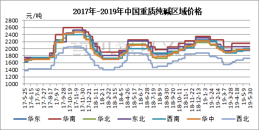 百川資訊:重質(zhì)純堿送到價(jià)格走勢(shì)圖(注:西北出廠)(2019.5.24-5.30)