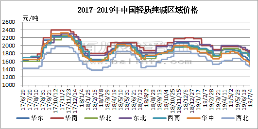 百川資訊:輕質(zhì)純堿出廠價(jià)格走勢(shì)圖(2019.6.28-7.4)